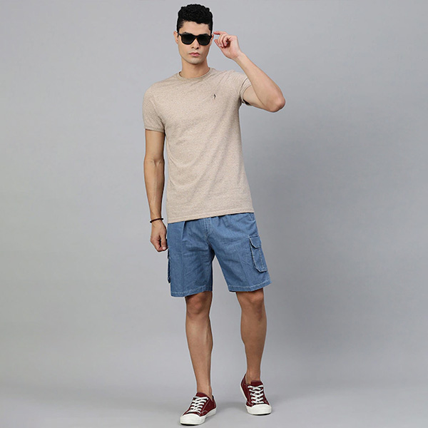 Men Blue Solid Pure Cotton Denim Cargo Shorts
