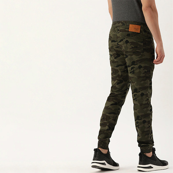Men Olive Green Camouflage Printed Slim Fit Joggers Trousers