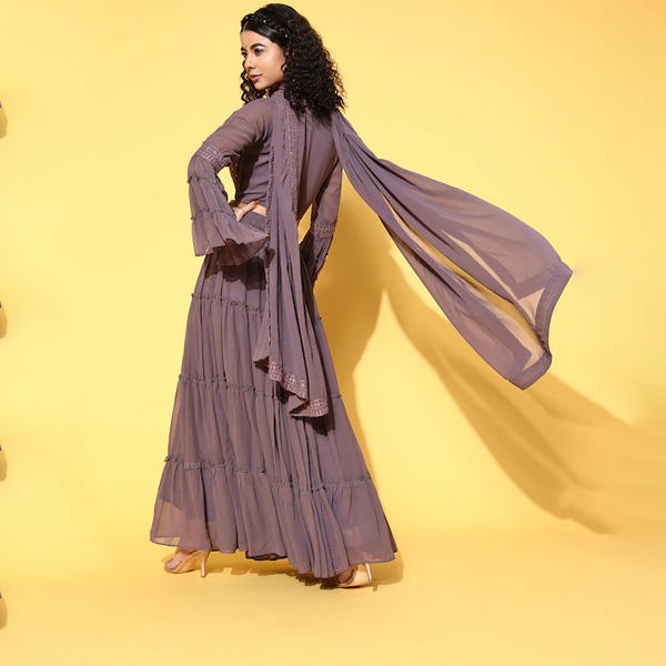 Elegant Mauve Embroidered Ready to Wear Lehenga Choli with Dupatta