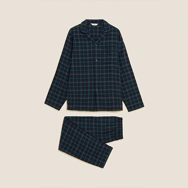 Men Green & Blue Checked Night suit