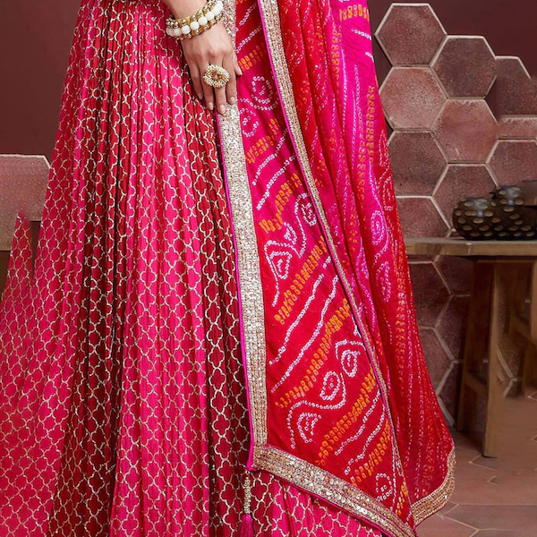 • Lehenga(Semi-Stitched) Flair : 3.5 mtr, waist-43", height-43"; Blouse(Unstitched) : 1 mtr"; Dupatta Length: 2.30 mtr